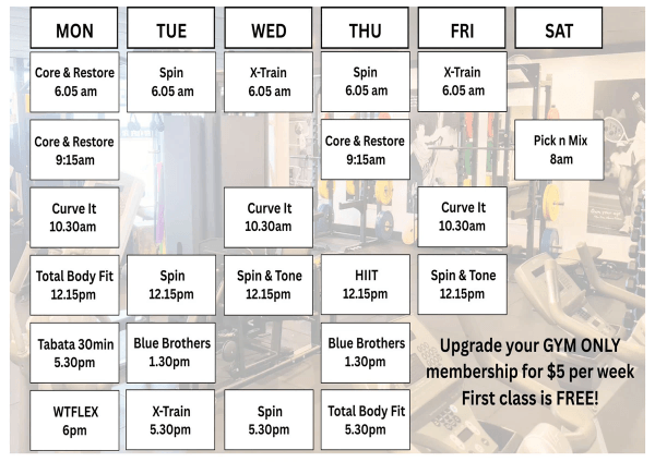 Unlimited classes, gym access, fitness assessments, strength testing and personalised exercise programmes every 8-weeks.